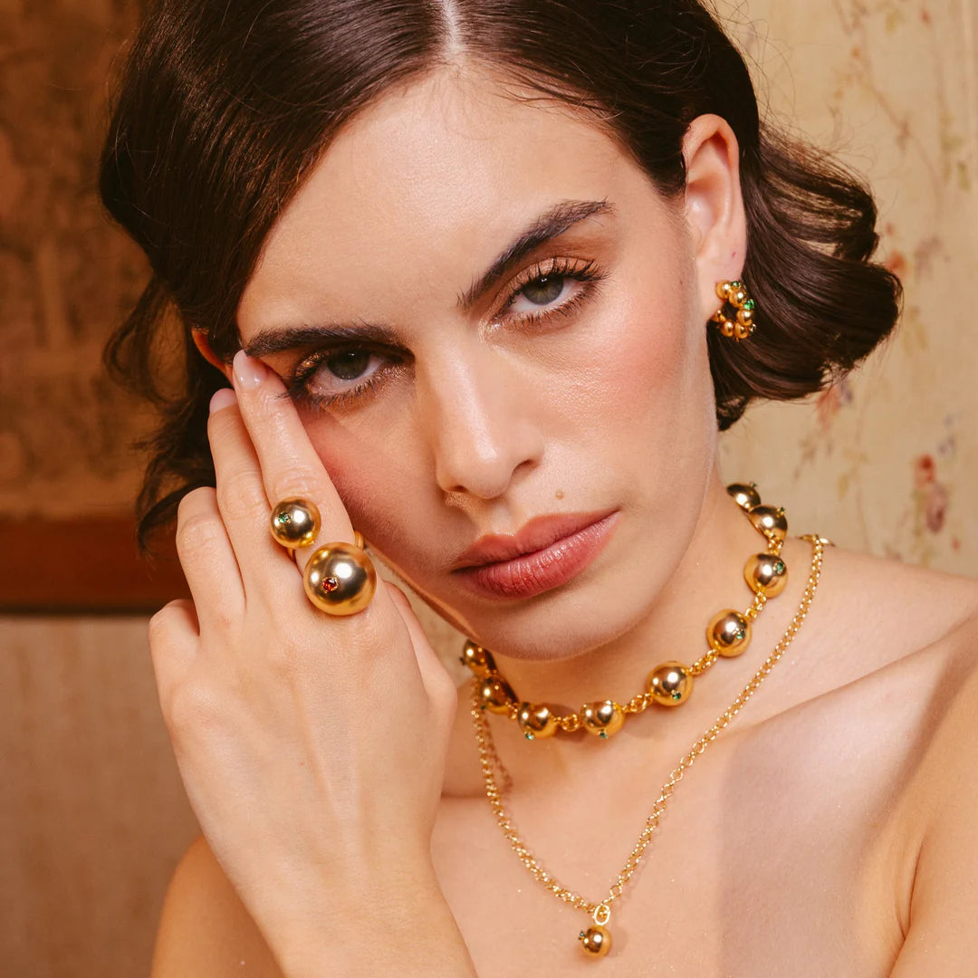 Todas nuestras joyas están elaboradas por artesanos colombianos en bronce con baño en oro de 24k & baño en plata Ley 925.